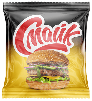 Гамбургер Бифштекс с соусом «Итальяно», горчицей, маринованным огурцом и луком. Пищевая и энергетическая ценность в 100 г продукта (средние значения): белки – 8,4, жиры – 15,6 г, углеводы – 28,5 г. Калорийность – 200 ккал/840 кДж. Масса нетто: 210 г.